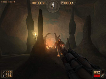Avancez jusqu'à la grotte puis tirez sur la caisse à l'intérieur de la caverne. Elle explose et ouvre le passage (photo ci-dessous)