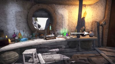 Ramassez "la jarre" au sol (photo ci-dessous à gauche) et placez-la sur le socle à proximité (photo ci-dessous à droite).