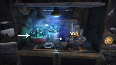 Placez le verre en "1", utilisez les baies rouges en "2" et cliquez sur le levier en "3" (photo ci-dessous à gauche). Buvez le verre en cliquant dessus. Vous voyez des spirales sur les zones en rouges (photo