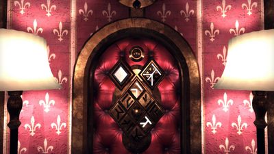 Il faut reproduire les 8 codes sur la porte sur le même principe que le télescope à la "Machinerie" (photo ci-dessous à gauche). Si le code est bon, un point blanc s'affiche au-dessus de la porte (photo ci-dessous