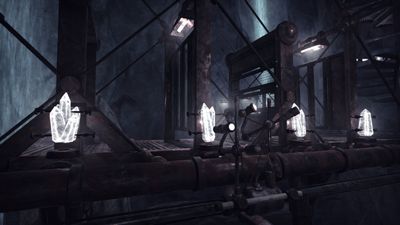 Le ou les cristaux indiquent la porte (photo ci-dessous à gauche). Lorsque vous restez devant les cristaux, ces derniers émettent des sons. Vous pouvez avoir plusieurs fois le son et de fréquences différentes. Allez