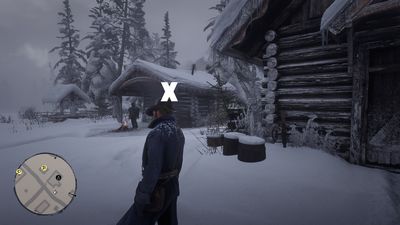 Dirigez-vous vers la maison suivante (photo ci-dessous à gauche) puis parlez à Pearson. Suivez Charles, vous partez à la chasse au gibier. Vous vous arrêtez un peu plus loin, prenez