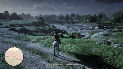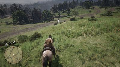 Descendez de cheval quand Hosea s'arrête puis descendez la pente mais en mode "accroupi" pour ne pas faire de bruit. Vous trouverez des lapins dans l'herbe un peu plus bas (photo ci-dessous à