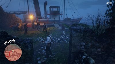 Suivez Dutch et protégez vos coéquipiers le temps que Micah finisse de placer les explosifs sur les canons. Sécurisez le camp (photo ci-dessous à gauche) puis sauvez le Capitaine (photo