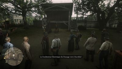 Les 2 cochers sautent du chariot, conduisez-le dans un endroit isolé (photo ci-dessous). Négociez la broche à 25$ puis remontez sur le chariot pour aller rendre la broche à