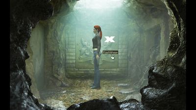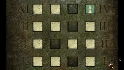 Examinez la pierre tombale. Vous y voyez des lettres renversées (photo ci-dessous à gauche). Retournez dans le trou puis sur l'emblème, modifier les mêmes lettres sur le mur (photo ci-dessous à droite).