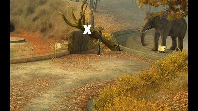 Allez au parc puis utilisez la corne sur vous pour faire venir les canards (photo ci-dessous à gauche). Allez ensuite au zoo devant l'enclos au crocodile puis utilisez de nouveau la corne sur vous (photo ci-dessous