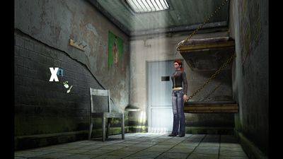 Cliquez sur la porte pour sortir de la cellule. Allez au parc puis utilisez le ballon crevé avec la fontaine. Vous obtenez