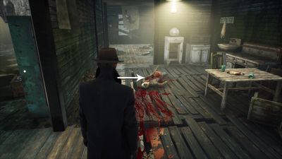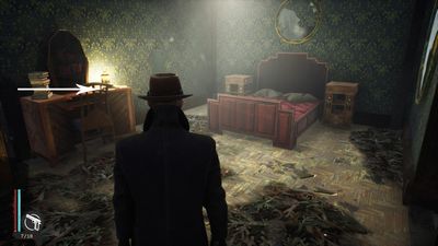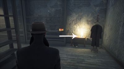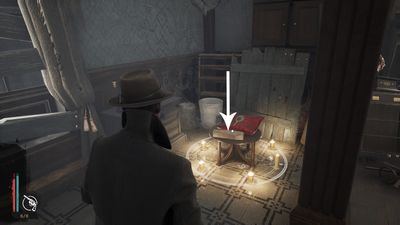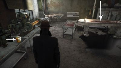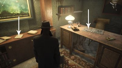 Allez à l'étage, tuez les hommes qui s'y trouvent puis examinez le corps sous le drap (photo ci-dessous à gauche). Examinez ensuite la lettre sur la chaise et le cercueil (photo ci-dessous à droite).