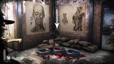 Examinez la note à côté du cadavre (photo ci-dessous à gauche). Utilisez "l'oeil de l'esprit" et examinez les 3 gamelles au sol (photo ci-dessous à droite).