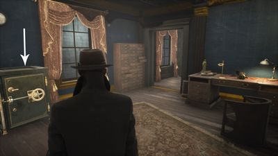 Examinez le coffre-fort (photo ci-dessous à gauche) puis utilisez le mode "oeil de l'esprit" pour examiner le bureau à côté (photo ci-dessous à droite).