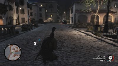 Cet objectif se déclenche après avoir fini l'objectif principal "Eliminer Rothbauer". Rejoignez la place du village puis allez au milieu de cette dernière (photo ci-dessous à gauche).