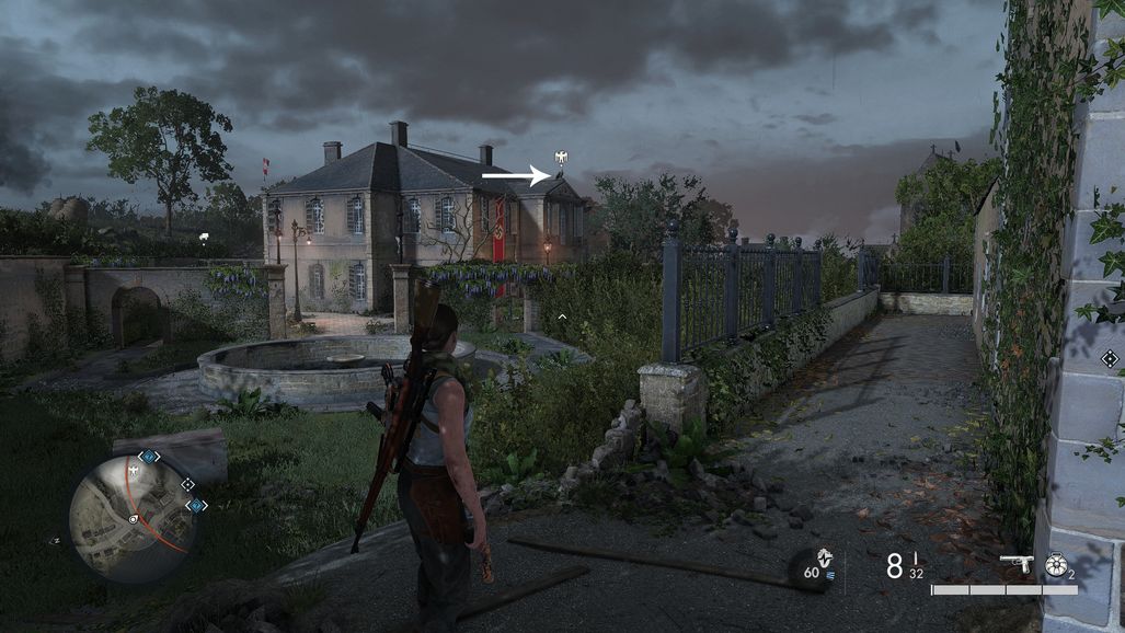 Allez à l'étage et cliquez sur la fenêtre de gauche (photo ci-dessous à gauche). Vous voyez l'aigle sur le toit de la maison (photo ci-dessous à droite).