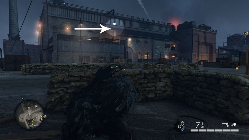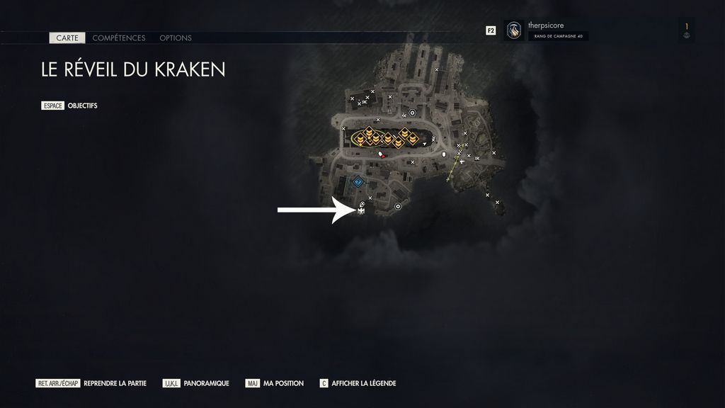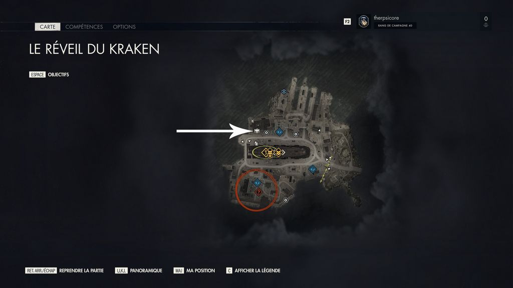 = > La première statue se trouve à l'endroit suivant (photo ci-dessous). Tout en haut de la tour cassée le long de la côté.