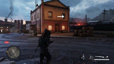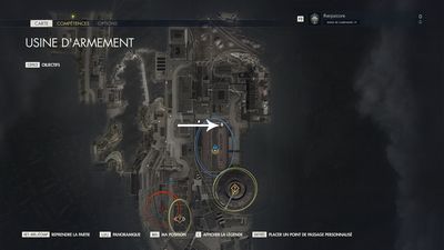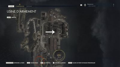 3. Etabli pour Mitraillettes = > A l'endroit suivant (photos ci-dessous à gauche et au milieu). Il faut monter à l'échelle pour accéder à la porte d'entrée. Il vous faudra une charge explosive pour