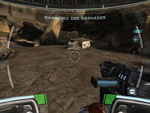 Tirez dessus pour la casser (photo ci-dessus à droite). Allez en face puis lorsque vous faite face aux supers soldats, lancez-leur des grenades. Dévérouillez la porte à gauche dans la pièce voisine (photo ci-dessous), puis avancez tout en haut de la plateforme. Vous arrivé à un petit pilier en roche, piratez le point de hack pour faire exploser le vaisseau lorsqu'il décolle. Retournez sur vos pas dans la salle voisine puis partez par la porte de droite.