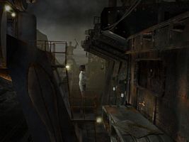 l'automate bougie sur le console. Actionnez le levier devant, la mine s'éclaire. Avancez toujours tout droit dans la mine, vous arrivez à une porte blindée (photo ci-dessous à droite).