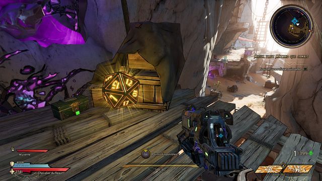 Montez sur les caisses pour accéder au dé (photos ci-dessous).