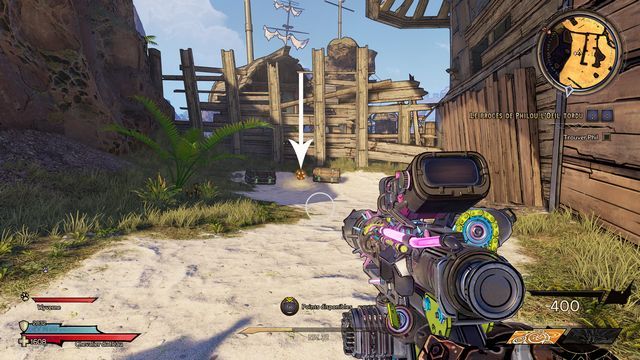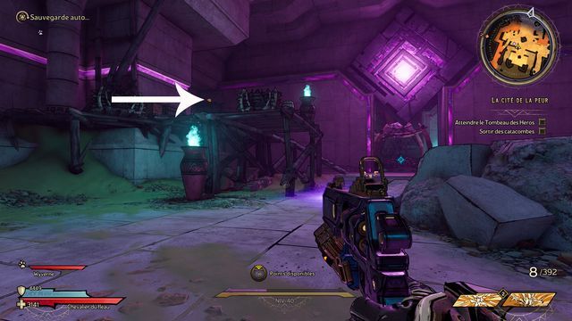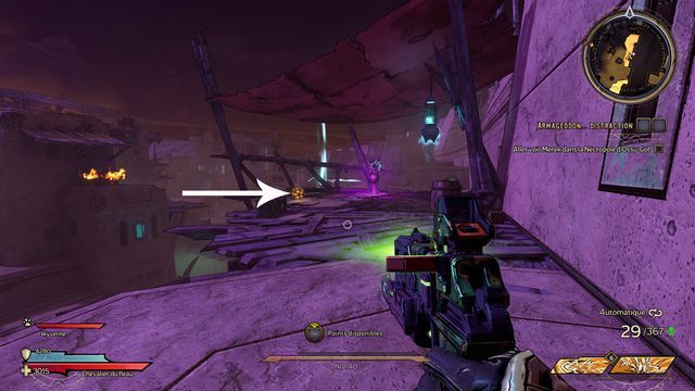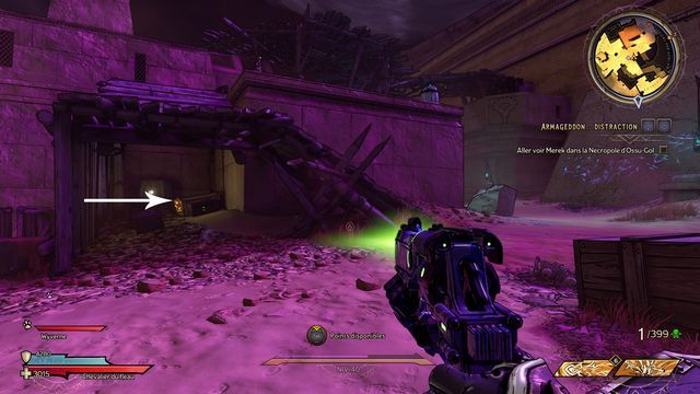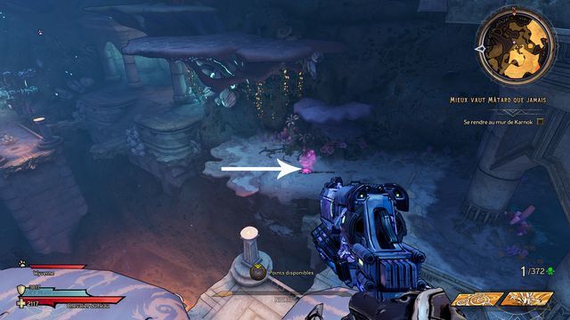 1. A l'endroit suivant (photos ci-dessous). Au début de la zone, juste après les 3 distributeurs d'armes.