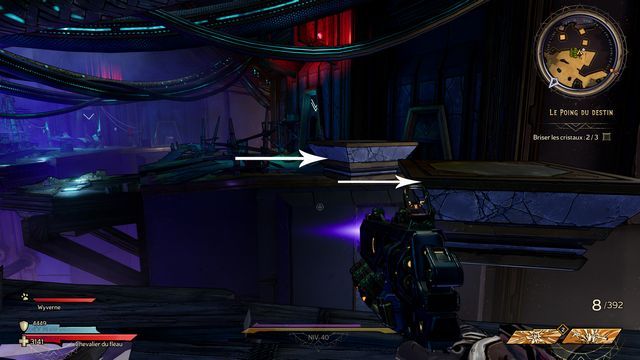 2. A l'endroit suivant (photos ci-dessous). Sur une plateforme en hauteur. Sautez sur les plateformes suivantes pour rejoindre le dé.