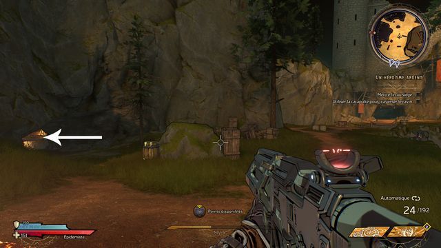 Pour y accéder, faites le tour par l'endroit suivant (photo ci-dessous à gauche). Au bout, vous trouverez un grand coffre (photo ci-dessous à droite).