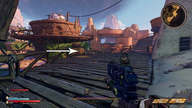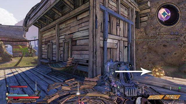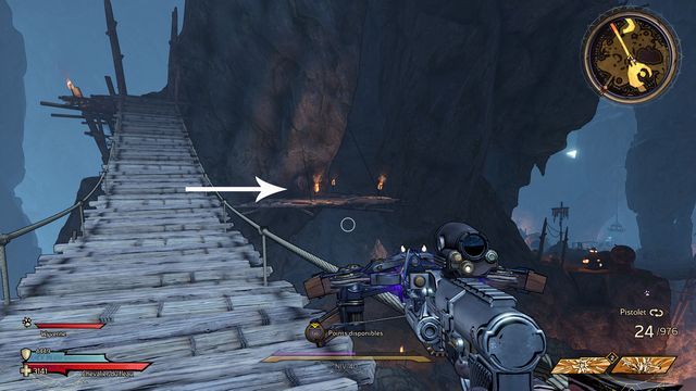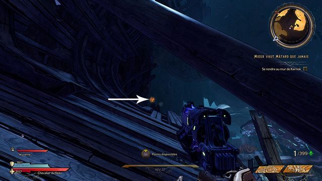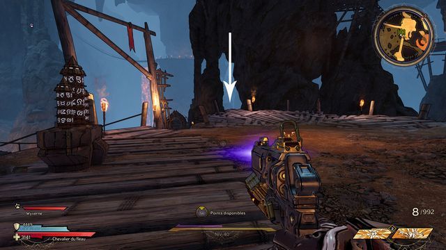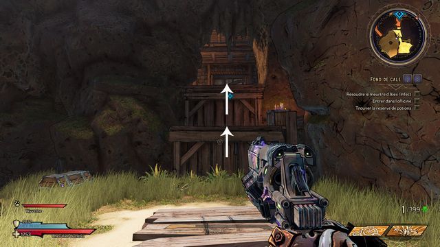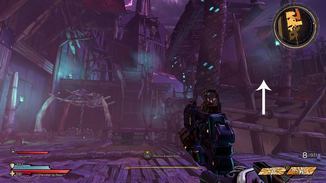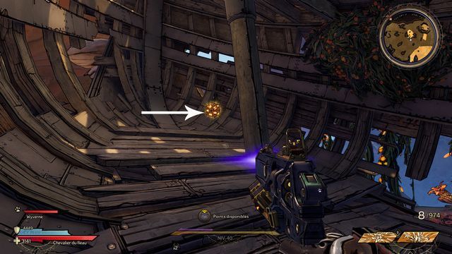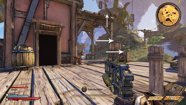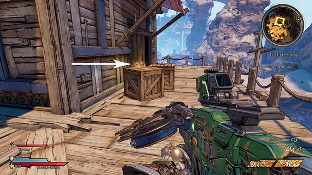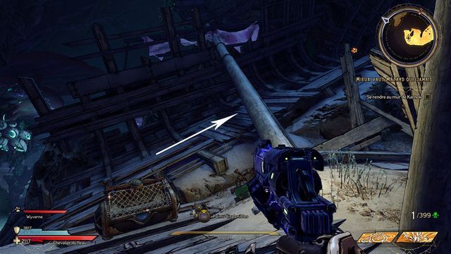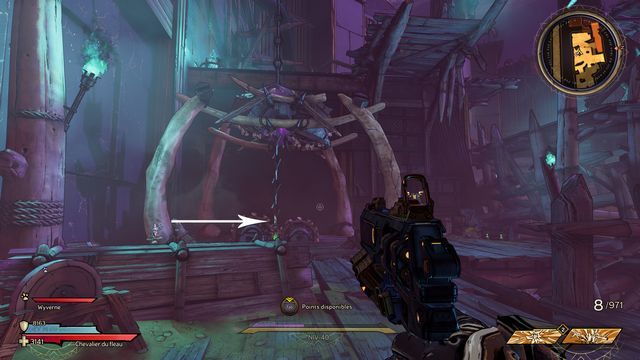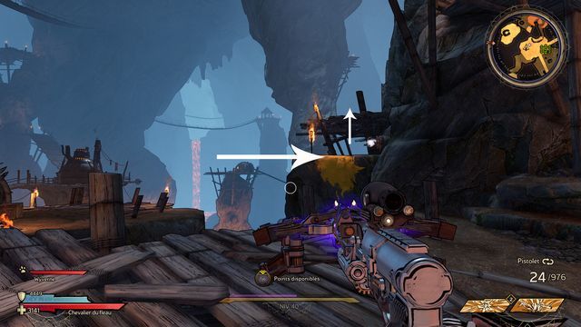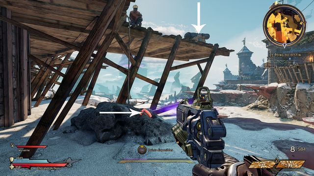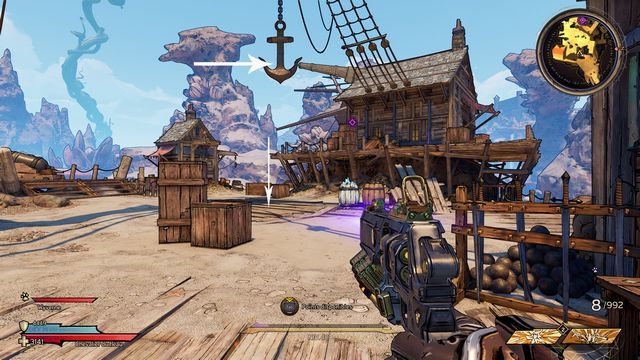 18. A l'endroit suivant (photos ci-dessous). Tirez sur l'ancre en hauteur, elle va tomber et casser les planches.