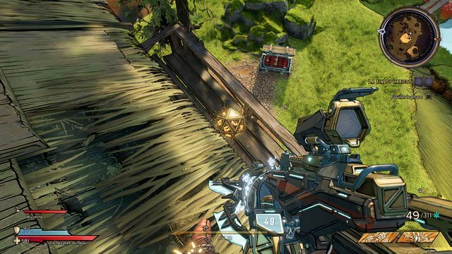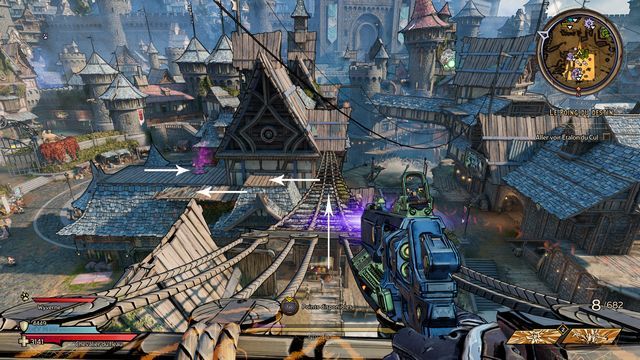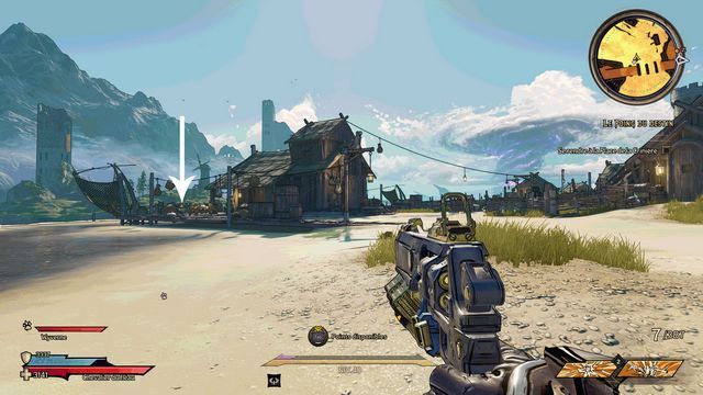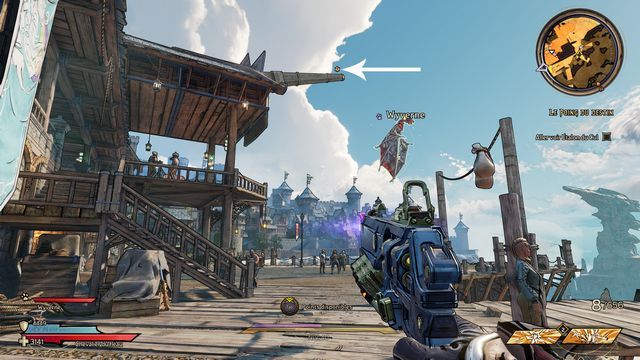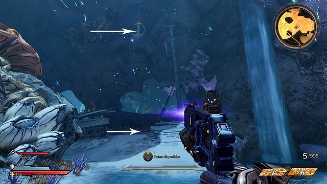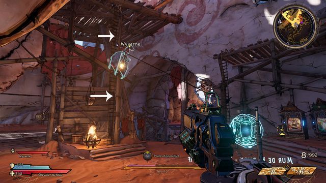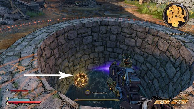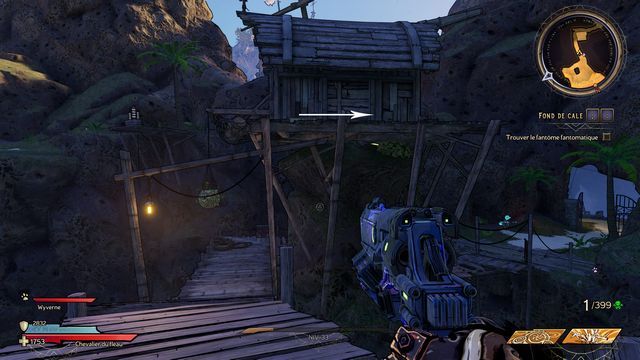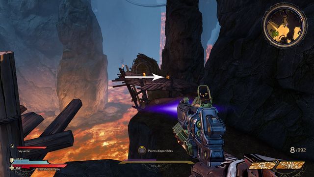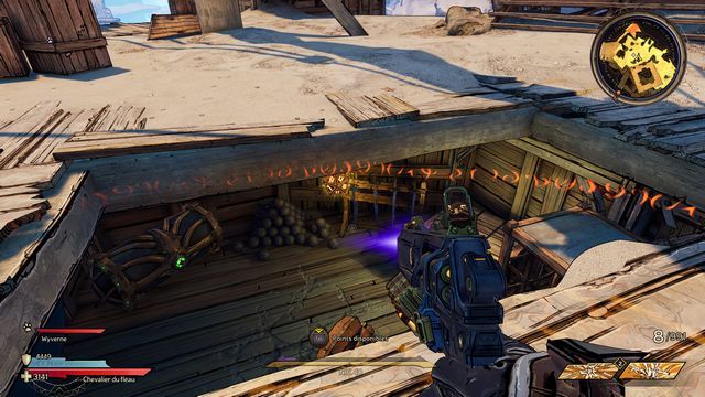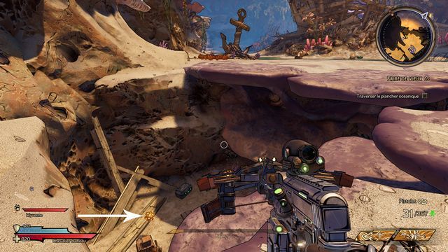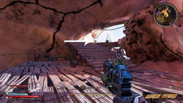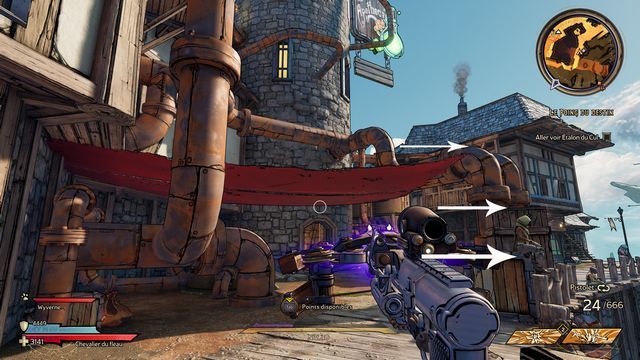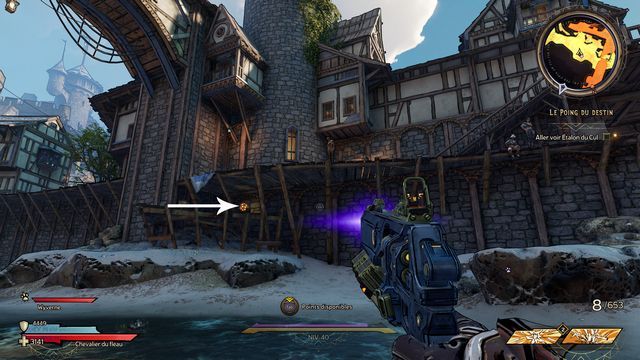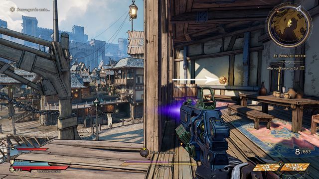 18. A l'endroit suivant (photos ci-dessous). Tirez sur l'ancre en hauteur, elle va tomber et casser les planches.