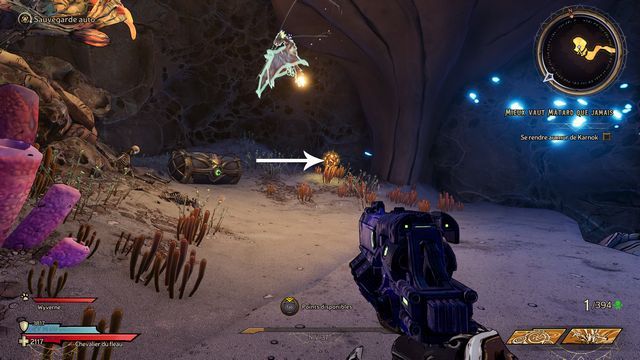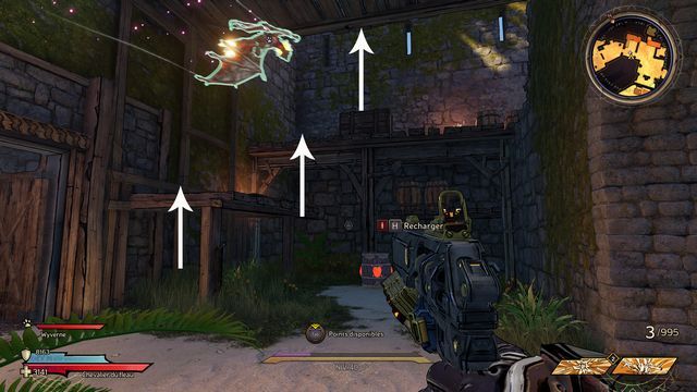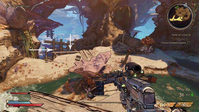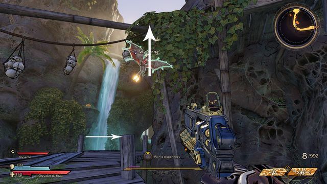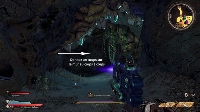 12. A l'endroit suivant (photos ci-dessous). A côté de la borne de sauvegarde. Tapez au corps à corps sur les lianes qui bloquent le passage.