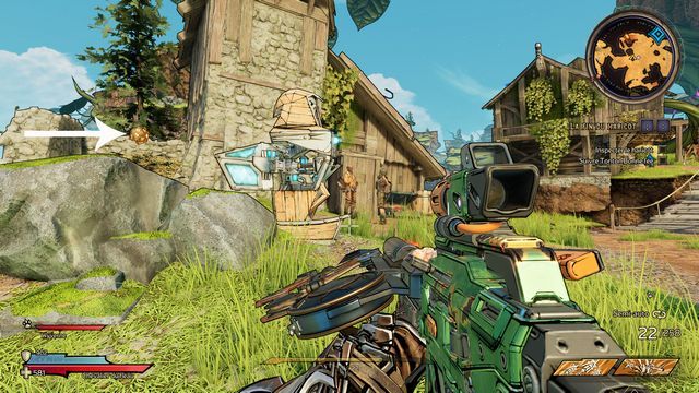 10. A l'endroit suivant (photos ci-dessous). Tirez dans les 2 petites cibles derrière les 2 grosses. Vous ouvrez la grille de l'orbe.
