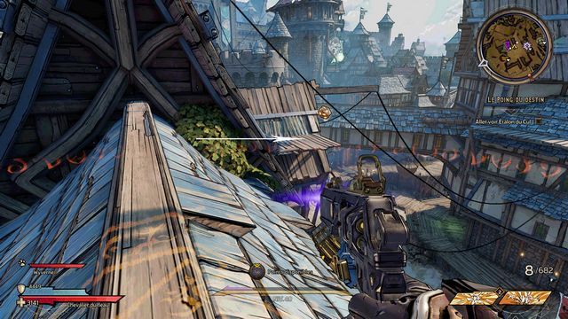 7. A l'endroit suivant (photos ci-dessous). Sautez sur le rebord et sur le toit de la maison pour accéder au dé.