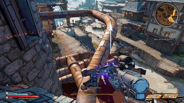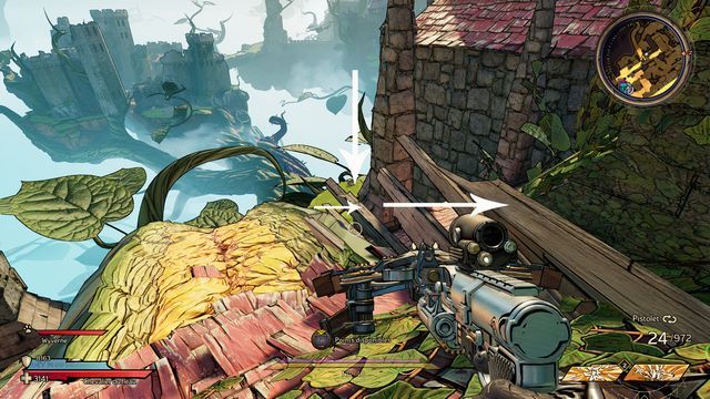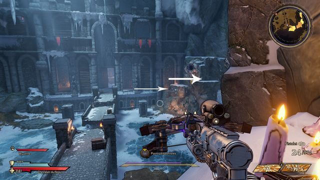 13. A l'endroit suivant (photos ci-dessous). Il faut tirer avec le canon pour détruire la barrière en bas et accéder au dé.
