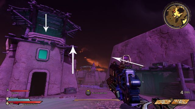13. A l'endroit suivant (photos ci-dessous). Montez sur la tour à l'endroit où il y a la marque jaune, le dé est à proximité.