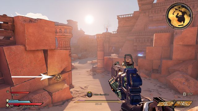 Vous détruisez la porte à l'opposé d'où vous êtes. Vous trouverez un dé à l'intérieur (photos ci-dessous).