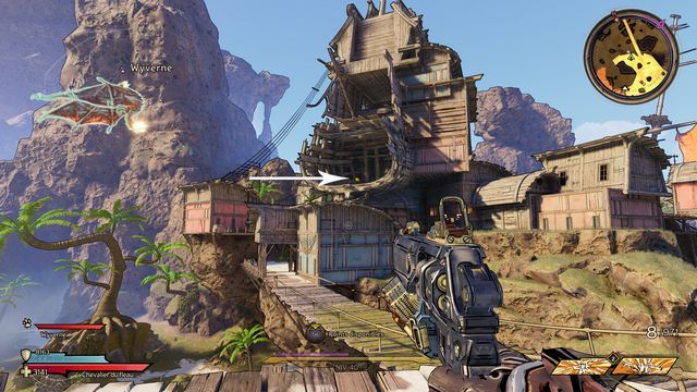 Allez tout en haut de l'auberge (photo ci-dessous à gauche), traversez le pont de corde puis sautez sur les plateformes à gauche pour rejoindre le jumper (photo ci-dessous à droite).
