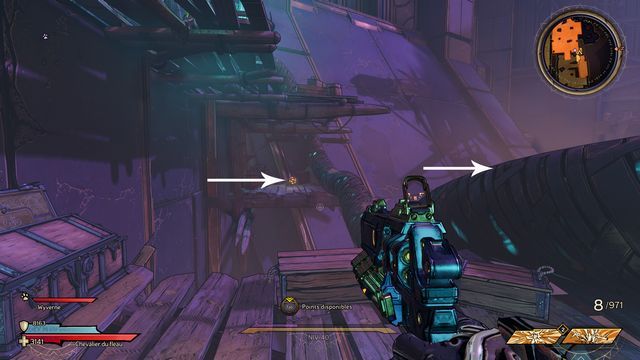 15. A l'endroit suivant (photos ci-dessous). Vous le voyez en hauteur lorsque vous êtes à côté des distributeurs d'armes.