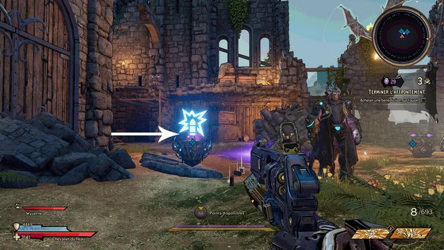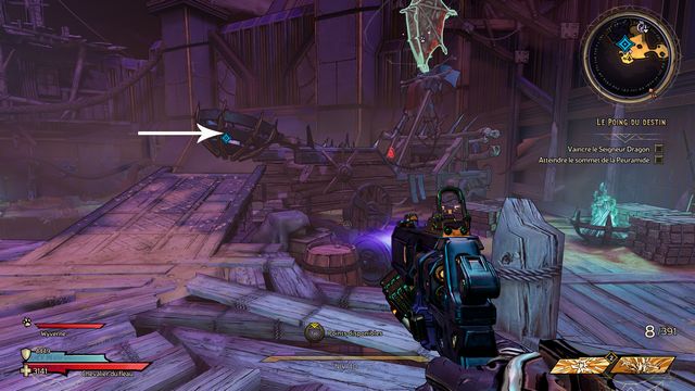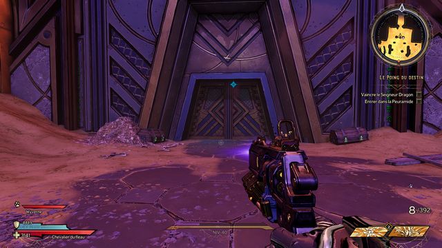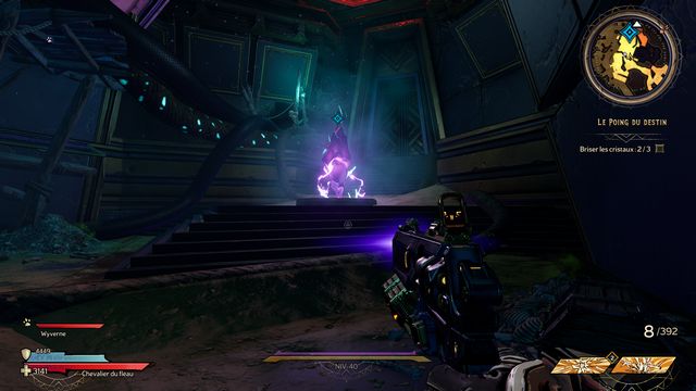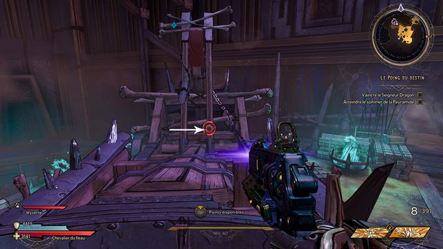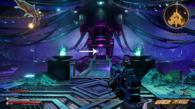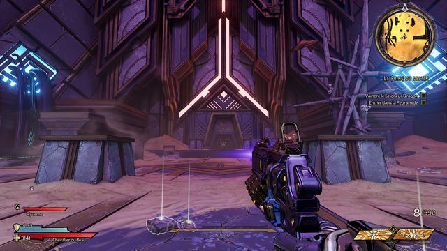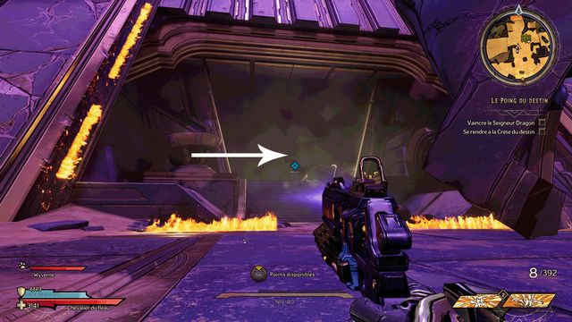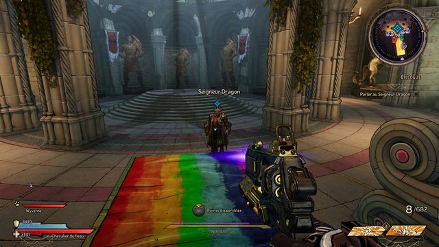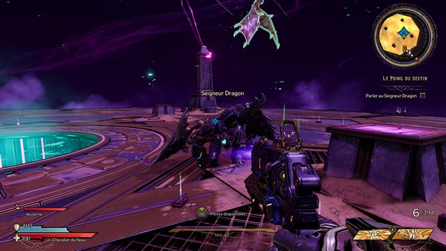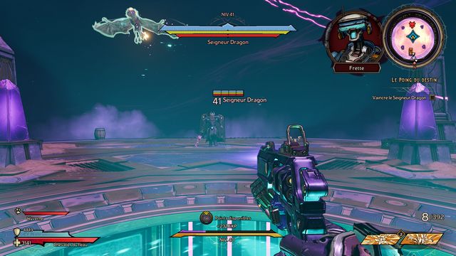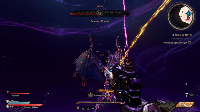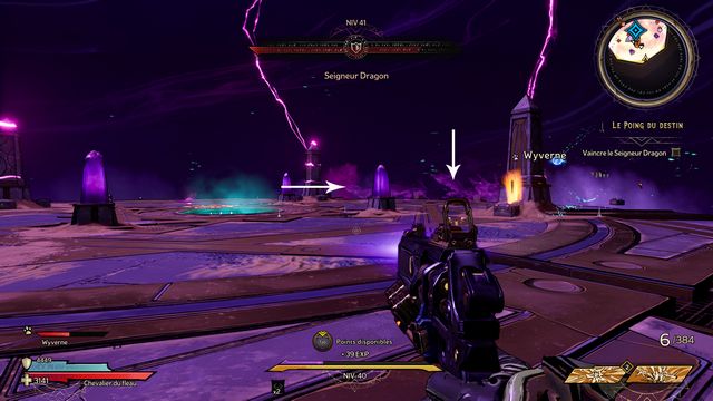Protégez-vous derrière les piliers si besoin. J'ai utilisé qu'une seule arme "Headcanon" (violette) à 1436 dégâts par coup. Lorsque le boss vous envoie des wyvernes transparentes violettes (photo ci-dessous à