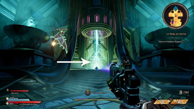 Faites le plein de munitions et placez-vous dans le puit de lumière (photo ci-dessous à gauche). Vous êtes envoyé face au boss "Le Seigneur Dragon" (photo ci-dessous à droite).