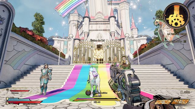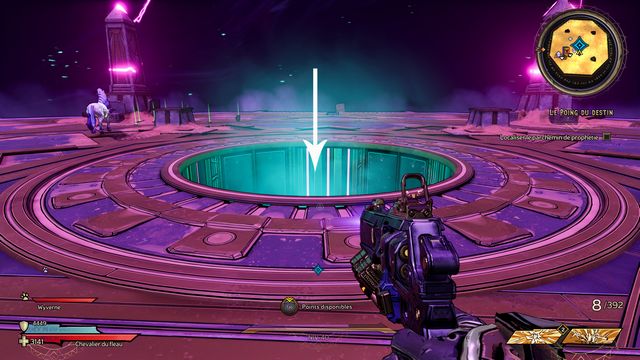 Tirez sur la cible (photo ci-dessous à gauche) pour être éjecté. Entrez dans "La Crête du Destin" (photo ci-dessous à droite).