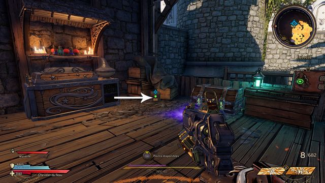 Récupérez l'orbe lunaire à proximité de la forgeronne (photo ci-dessous à gauche) et cliquez sur gros coffre (photo ci-dessous à droite).
