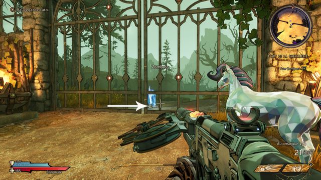 Rejoignez l'étalon du cul devant la grille. Tirez dans la tête du personnage derrière la grille (photo ci-dessous) puis passez la grille.