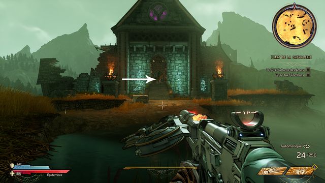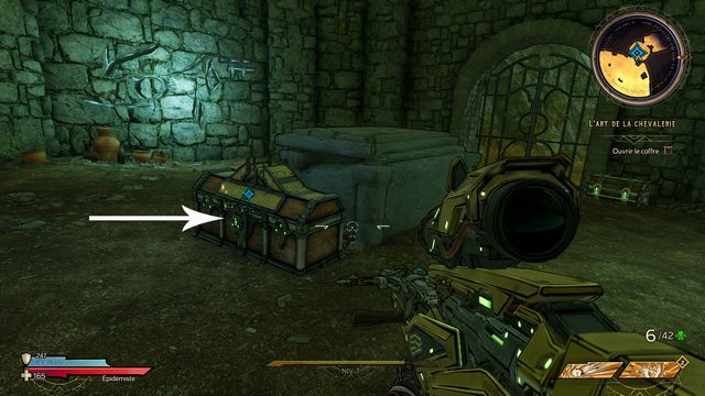 Entrez dans le mausolée (photo ci-dessous à gauche). Récupérez les objets dans le coffre (photo ci-dessous à droite).