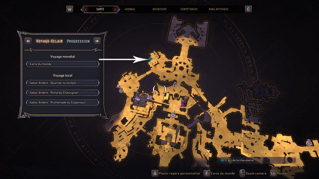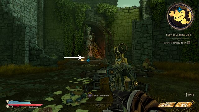 Sautez en contrebas puis cliquez sur l'autel pour y placer le tome du destin (photo ci-dessous à gauche). Sautez en hauteur sur la plateforme (photo ci-dessous à droite).