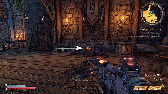 Courez et sautez pour atteindre les passerelles puis rejoignez le passage en face (photo ci-dessous à gauche). Cliquez sur le gros coffre un peu plus loin (photo ci-dessous à droite).