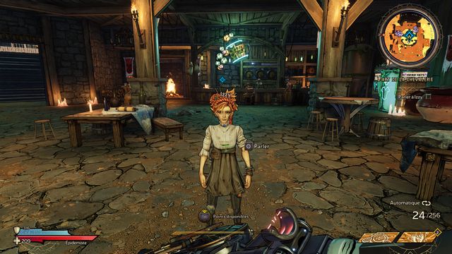 Cliquez sur le gros coffre à gauche (photo ci-dessous à gauche). Achetez un emplacement d'inventaire puis rejoignez la taverne "Izzy's Fizzies" (photo ci-dessous à droite).