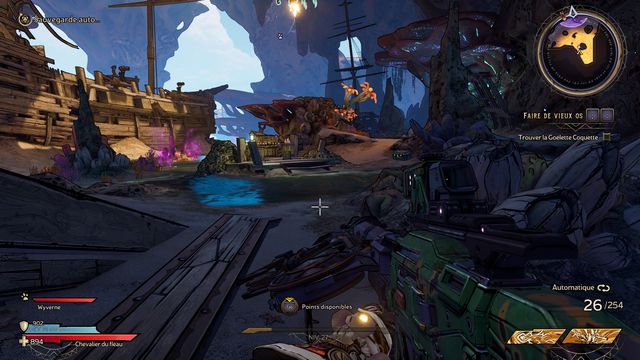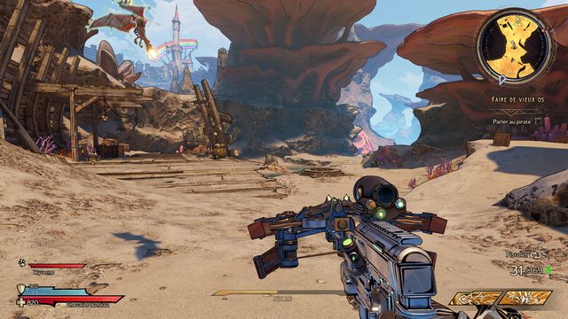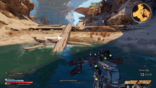 Choisissez "L'Insulte de la Bleusaille". Les pirates vont vous attaquer, tirez leur dessus jusqu'à ce qu'ils se rendent. Rejoignez l'endroit suivant (photos ci-dessous).