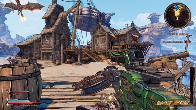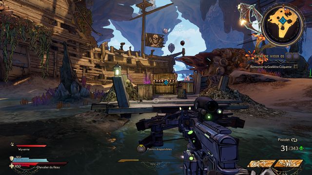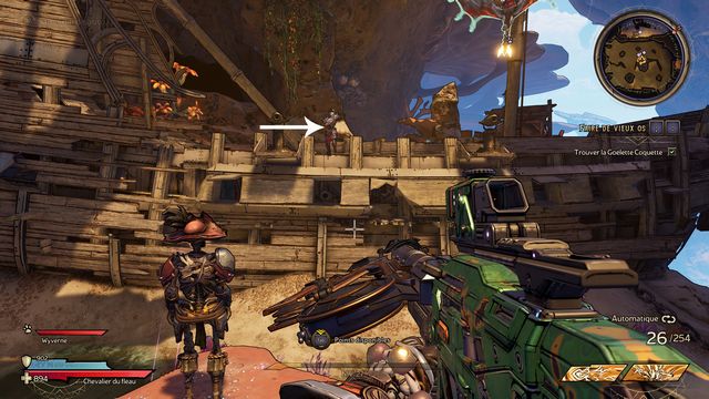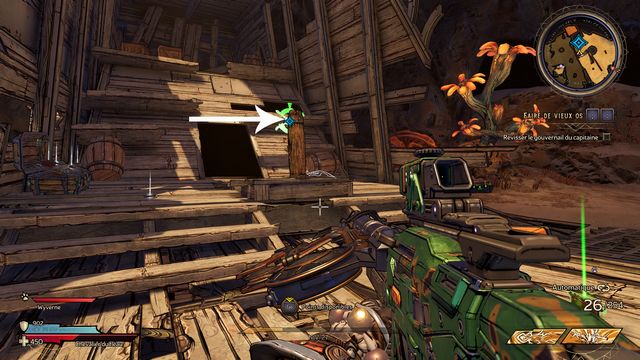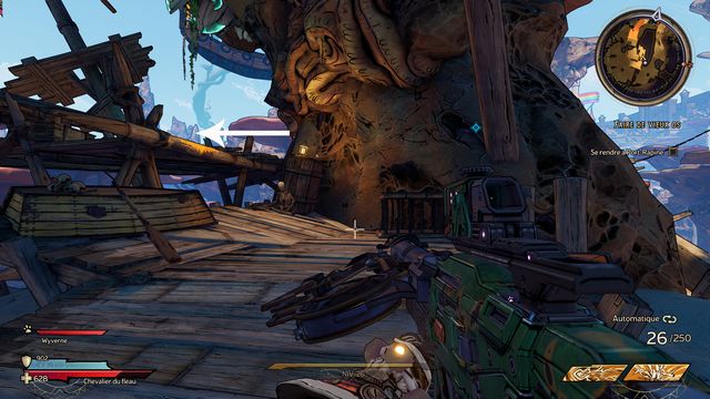 Utilisez les jumpers pour rejoindre le bateau en hauteur (photo ci-dessous à gauche). Tuez le mini boss et ramassez "Le Gouvernail" (photo ci-dessous à droite).