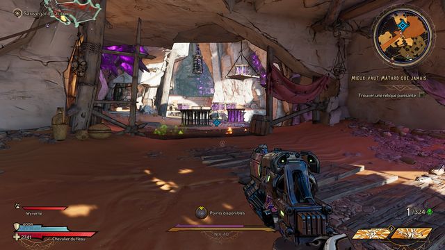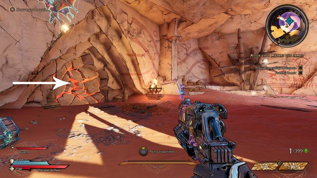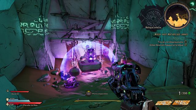 Tirez dans le mur fissuré (photo ci-dessous à gauche). Récupérez la relique au fond de la grotte (photo ci-dessous à droite). Cliquez dessus même si elle est sous la protection magique, vous ne risquez rien.