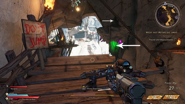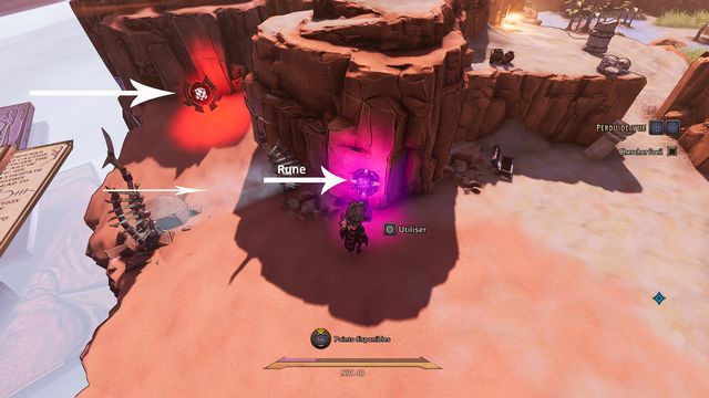 Entrez au "Mur de Karnok" sur la carte du monde. Ramassez la relique (photo ci-dessous à gauche). Elle fait apparaître le fantôme de Mâtard. Mâtard débloque l'accès au jumper (photo ci-dessous