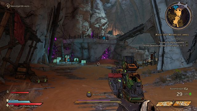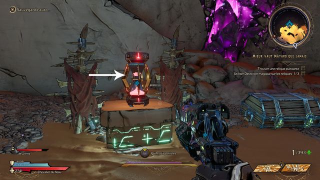Vous rejoignez la zone suivante (photo ci-dessous à gauche). Cliquez sur les 3 reliques dans la zone (photo ci-dessous à droite).