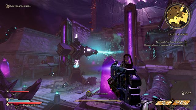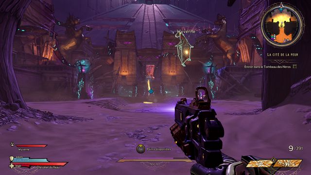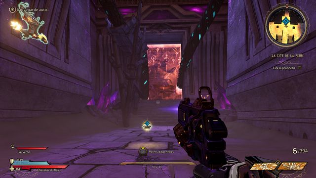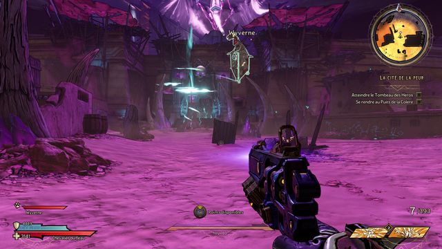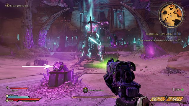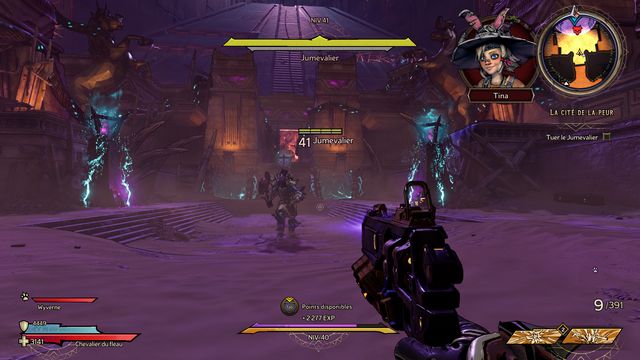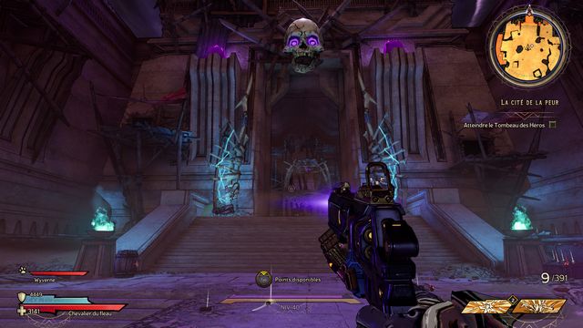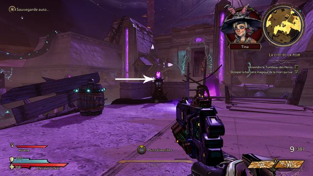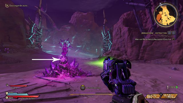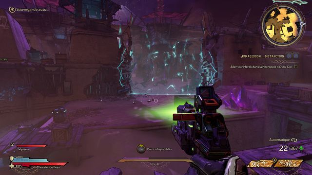 J'ai utilisé 2 armes, un pistolet catégorie violette "Headcanon" (1436 de dégâts par coup) et un autre pistolet de catégorie violette aussi "Fissive Vamp of the Haunted Castle". Cette arme tire en rafale (217*3 de